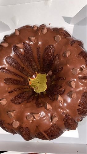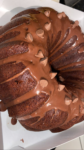 For shipped Bundt cakes, expect a delightful surprise - the cake comes shrink-wrapped, accompanied by our delectable ganache in a convenient piping bag, all beautifully packed in a box.